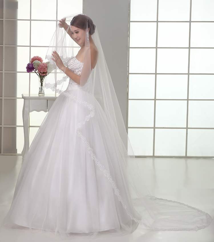 Bridal veil 1 5 meters short veil 2 meters 3 meters car bone sequin wedding dress long veil new dress accessories