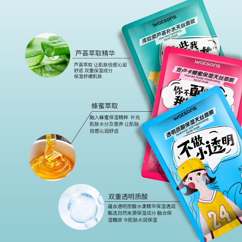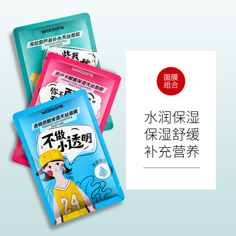 Watson's Tencel mask combination 15 pieces of hyaluronic acid aloe vera cucumber moisturizing elastic moisturizing hydrating