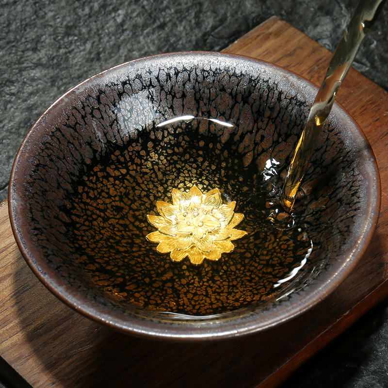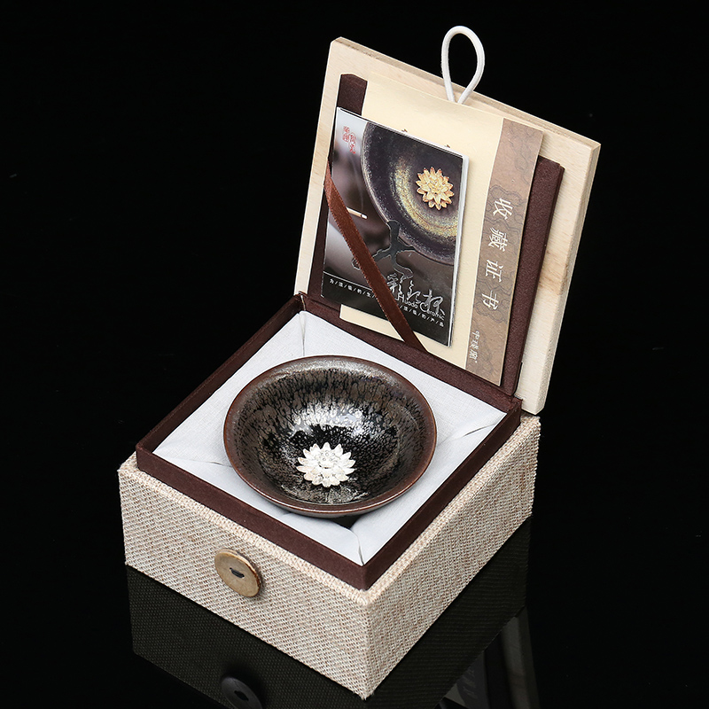 A-tang kiln Li-A stack change oil drop Tianming Jiandang tea cup master cup embedded in the silver kung fu tea cup tasting cup