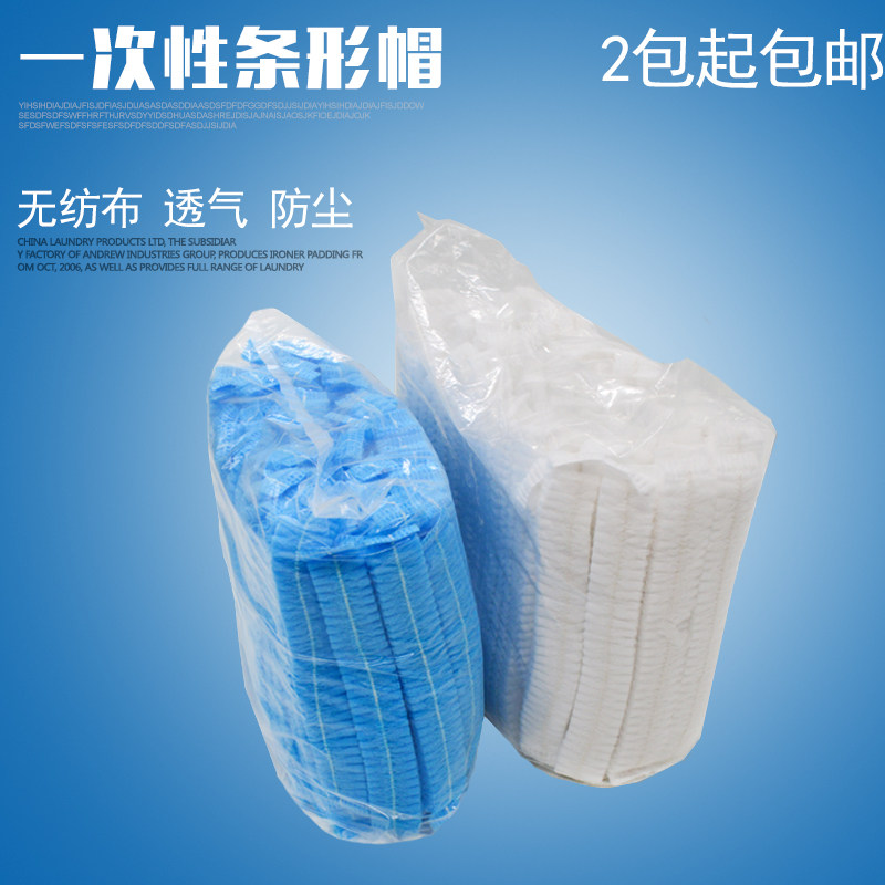 Disposable dust-free hat white and blue non-woven strip hat kitchen hat food workshop factory dust-proof work hat
