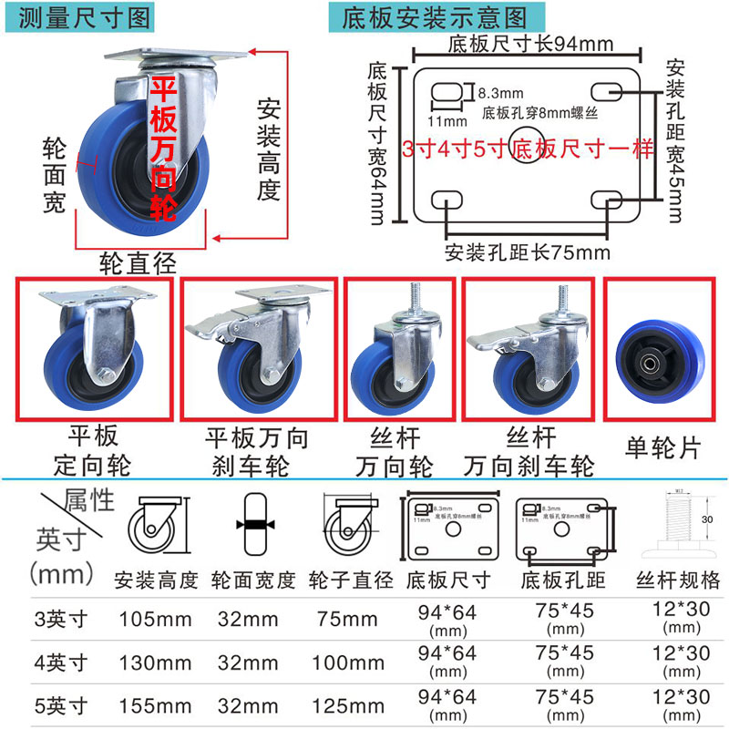 Silent wheel 5 inch medical screw brake universal wheel 3 inch wheel trolley wheel 4 inch caster furniture dining wheel