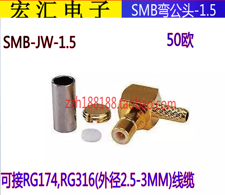 Connector SMB connector SMB-J KW-1 5 SMB elbow male head pressure welding RG316 feeder connector