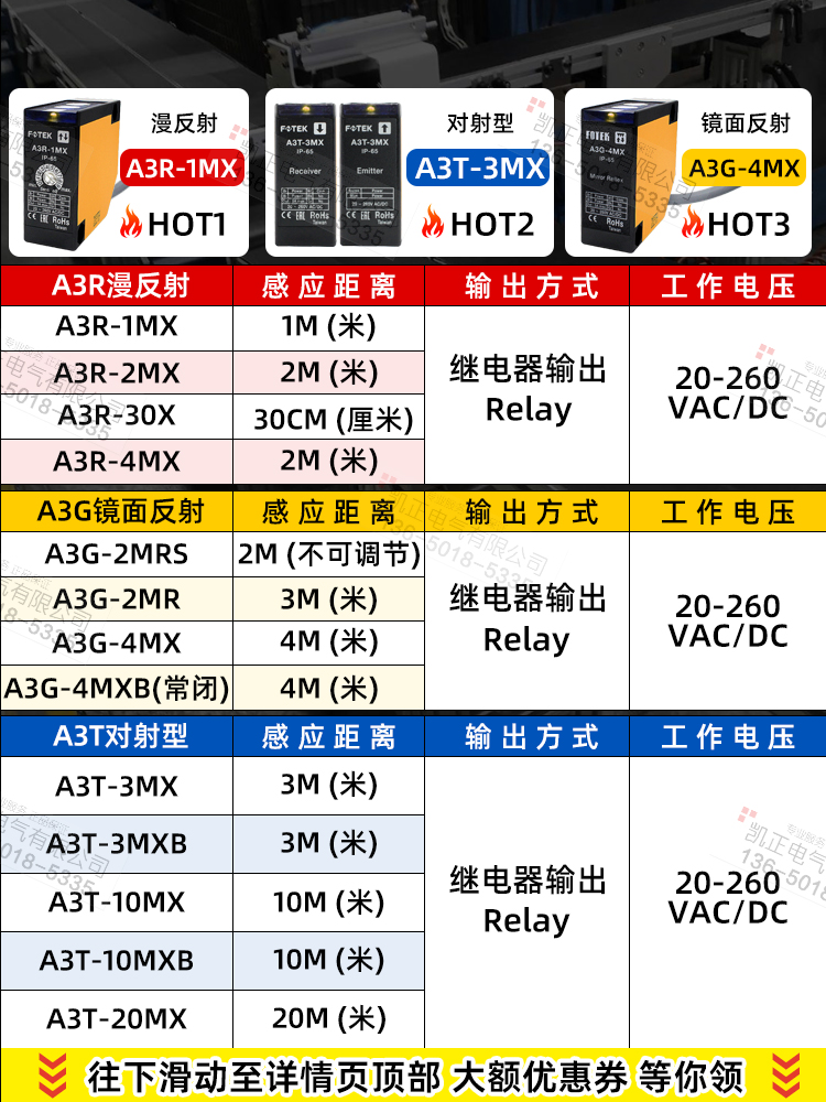 New original Taiwan Yangming FOTEK diffuse reflection photoelectric switch A3R-30X photoelectric sensor