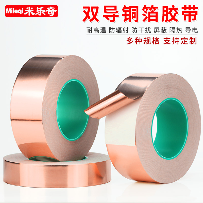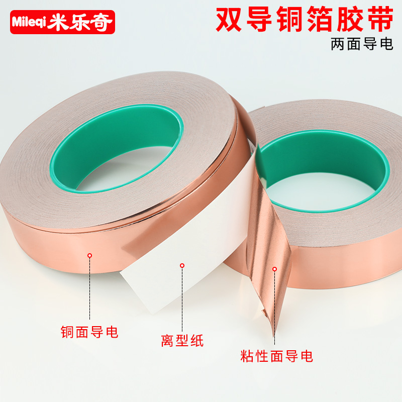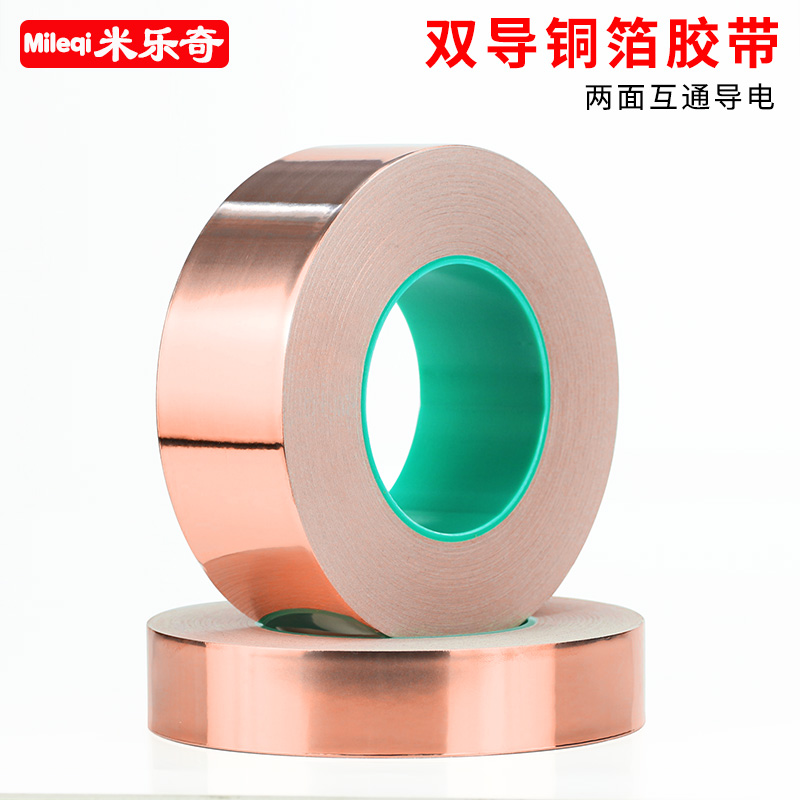 Mileqi double conductive copper foil tape pure copper double-sided conductive copper foil paper high temperature resistance thickening 0 06mm conductive cloth single-sided tape signal reinforcement shielding tape width 1-2-3-5-10CM width