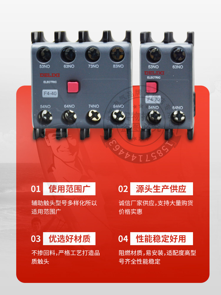 Delixi AC Contactor Auxiliary contact F4-11 02 20 with CJX2 CJX4 LC1