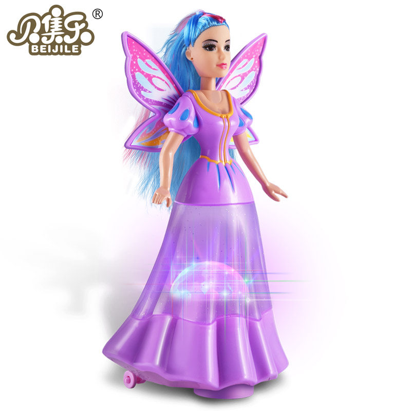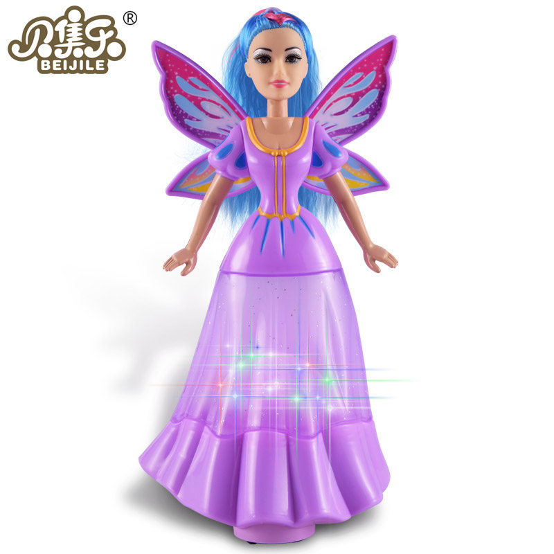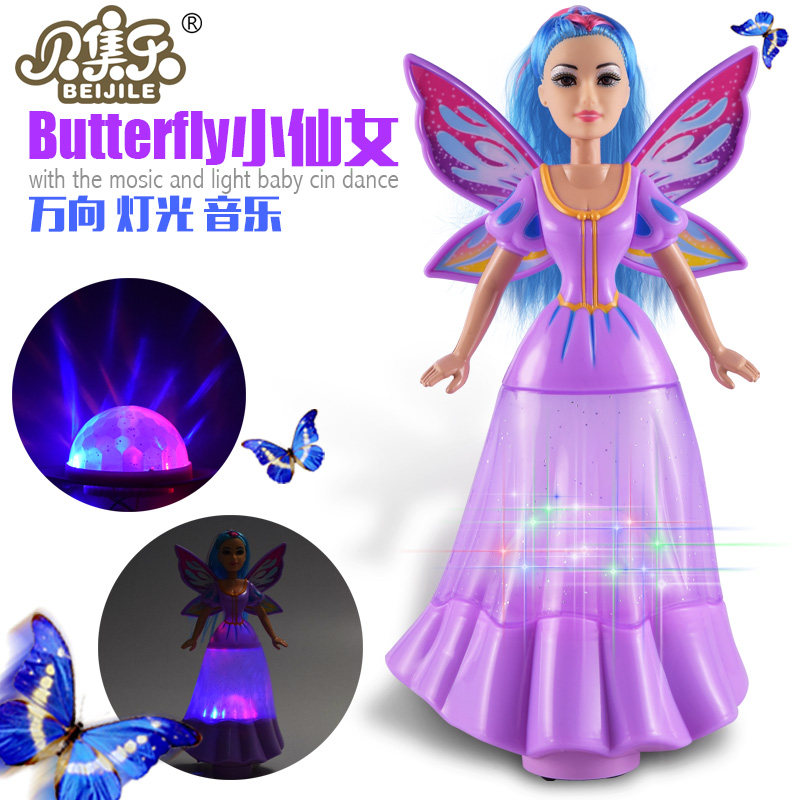Hot sell new electric universal ice and snow chic Butterfly Fairy Barypyrene Doll Shine Music Children Girl Toys