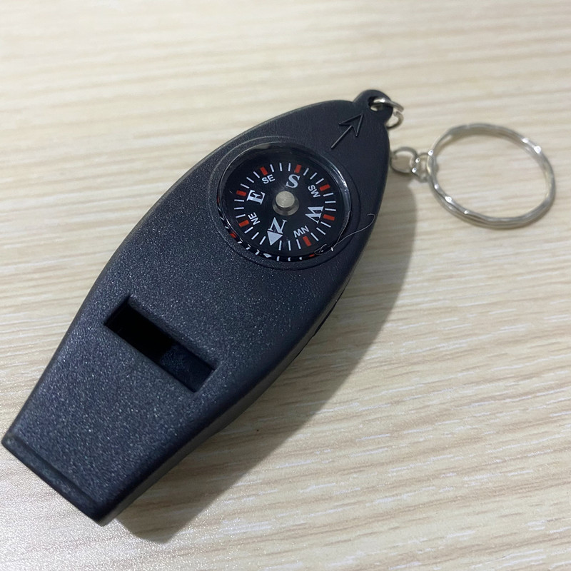 Four-in-one versatile whistleblowing mountain hiking travel begging for a bright set whistle with a compass magnifier thermometer
