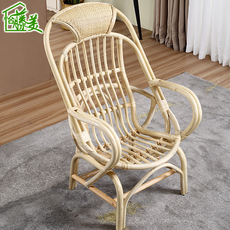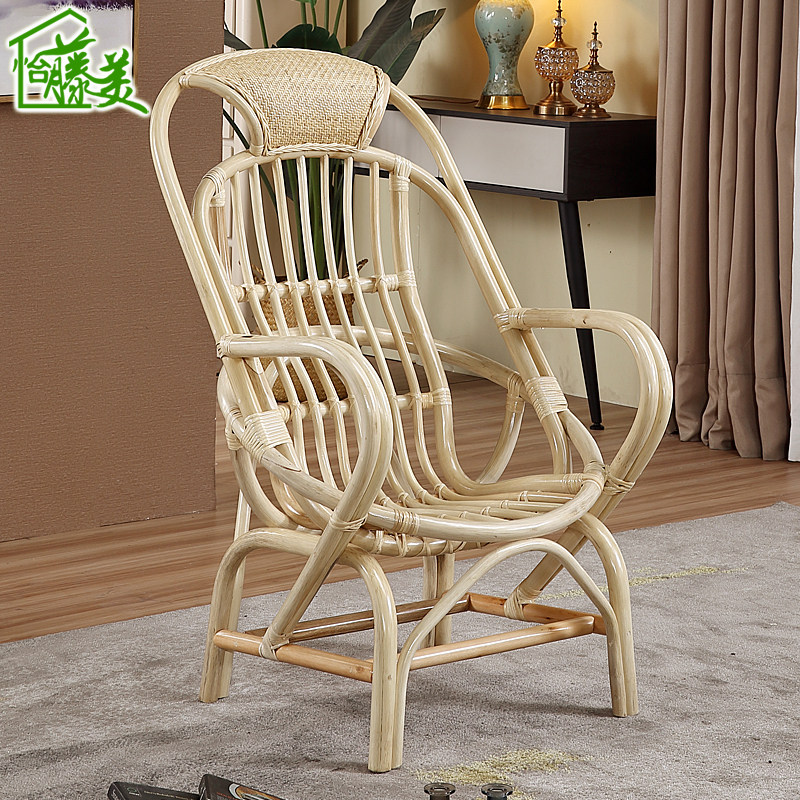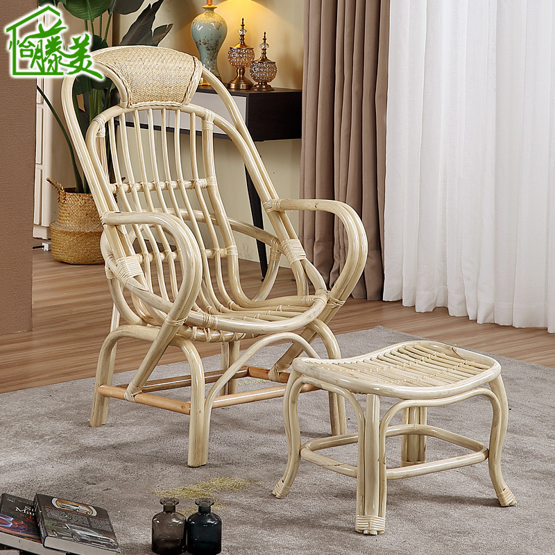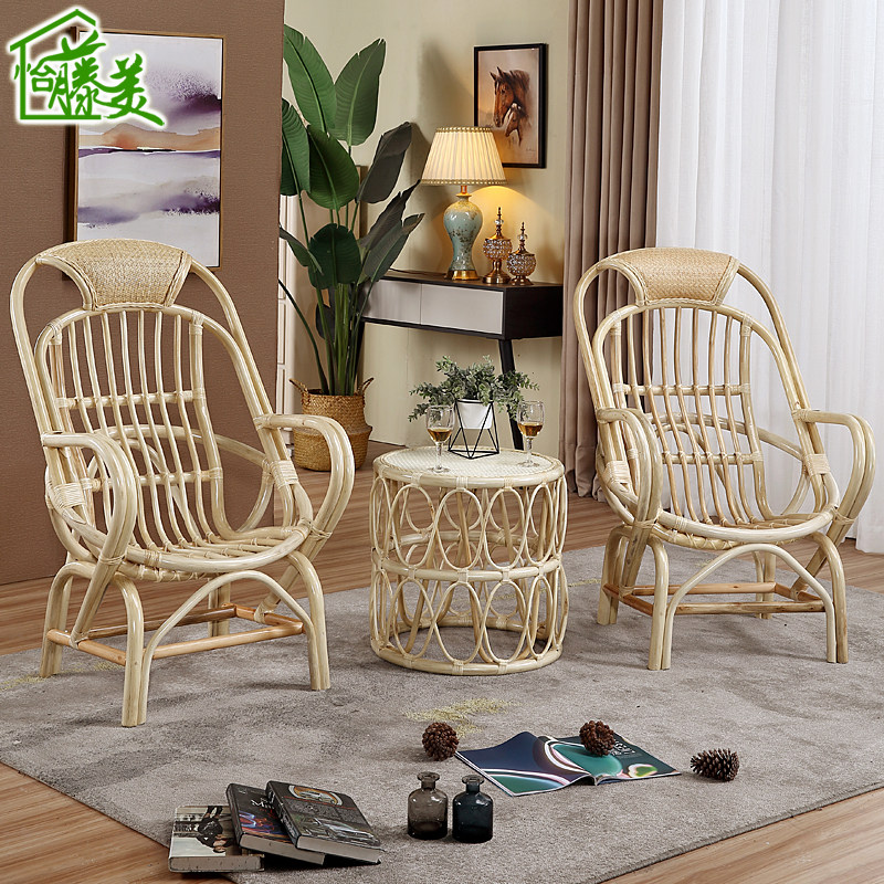Home balcony leisure rattan chair coffee table three-piece set recliner foot combination Real rattan table and chair rattan back chair