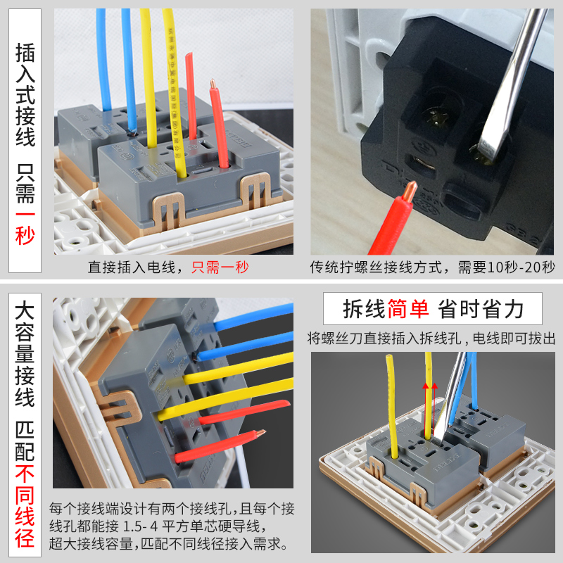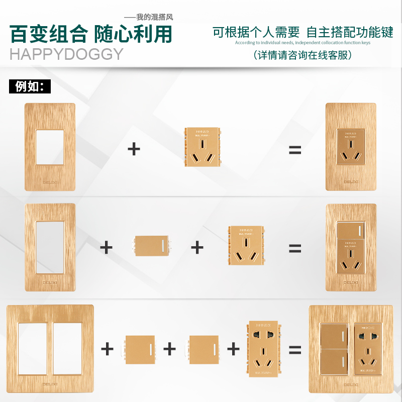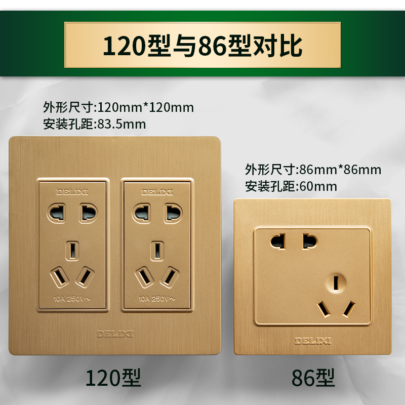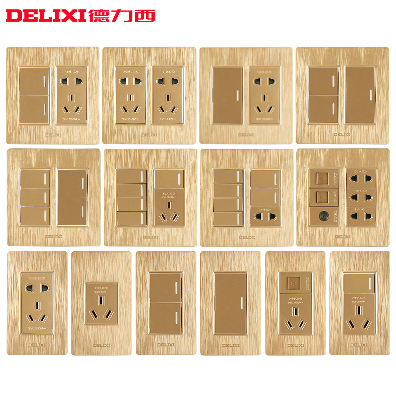 Delixi 120 type switch socket household brushed gold wall panel ten holes one open five holes two three holes