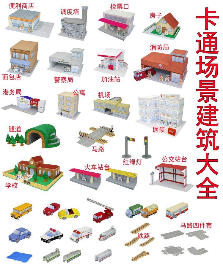 Villa Wharf Residential Building Traffic Light Airport Bakery Gas Station Ticket Gate Police Station Tunnel Convenience Store Dispatch Desk Fire Station School Hospital Subway Station Bus Station Intersection Car Set Railway Cardboard Road Paper