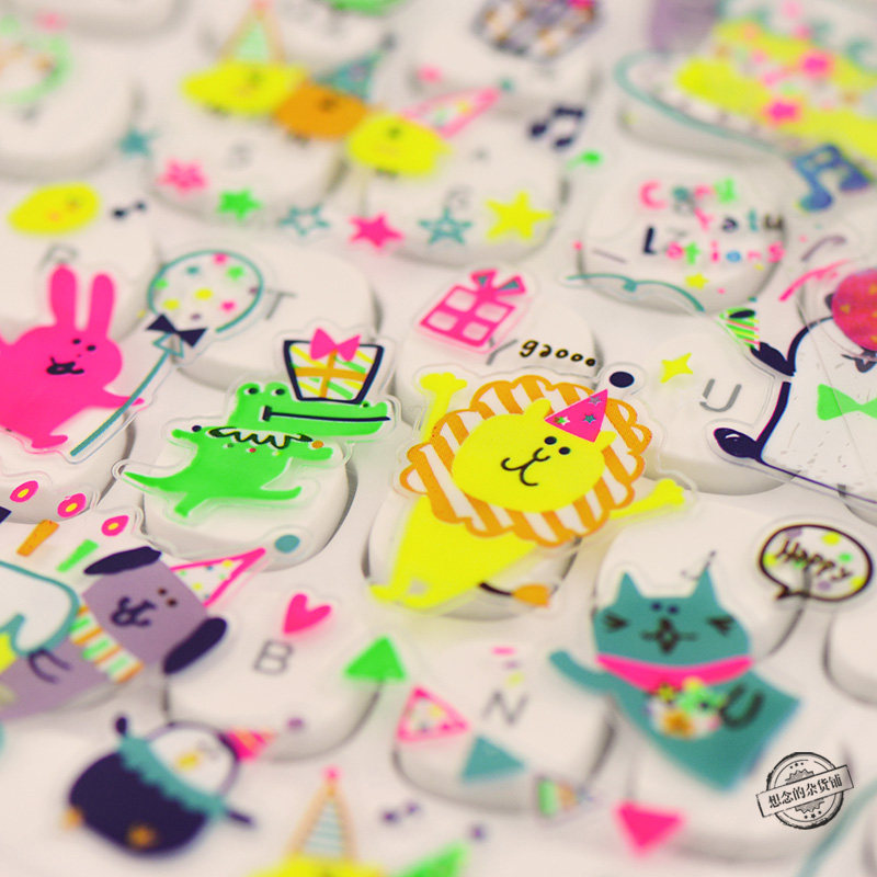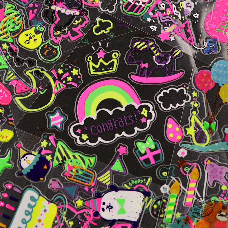 Cute fluorescent decorative sticker book account cartoon human animal small photo album Mobile Phone Girl heart cup waterproof sticker