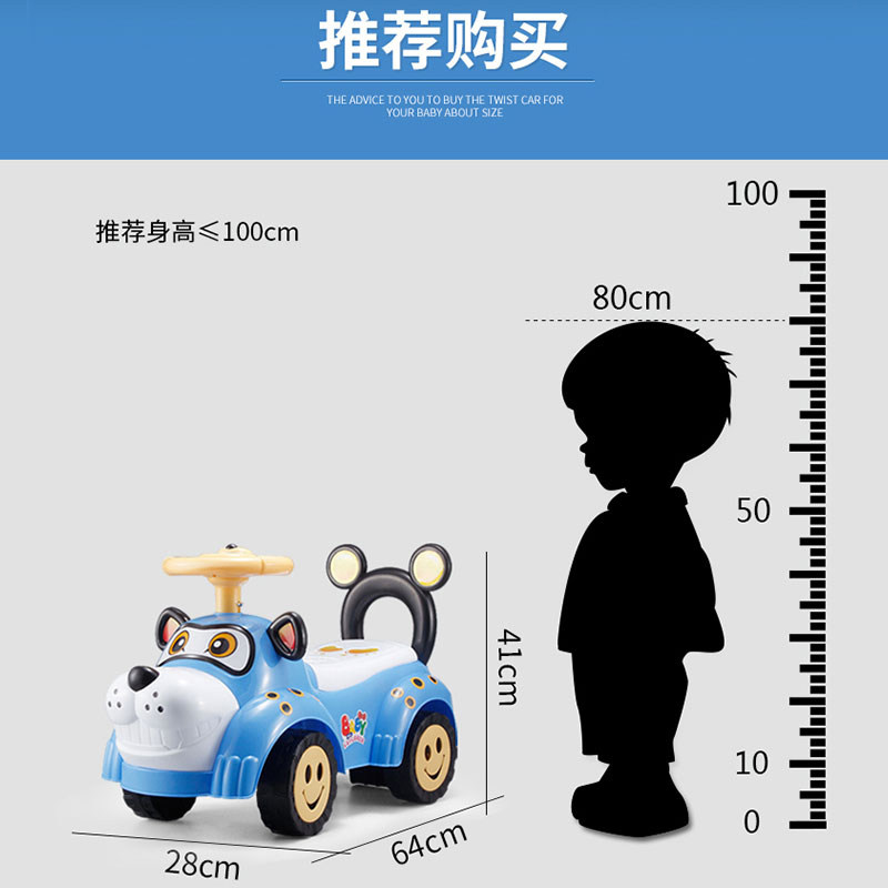 Fengyuan children's twisting car with music sliding car baby four-wheel toddler to help twisting car baby toy