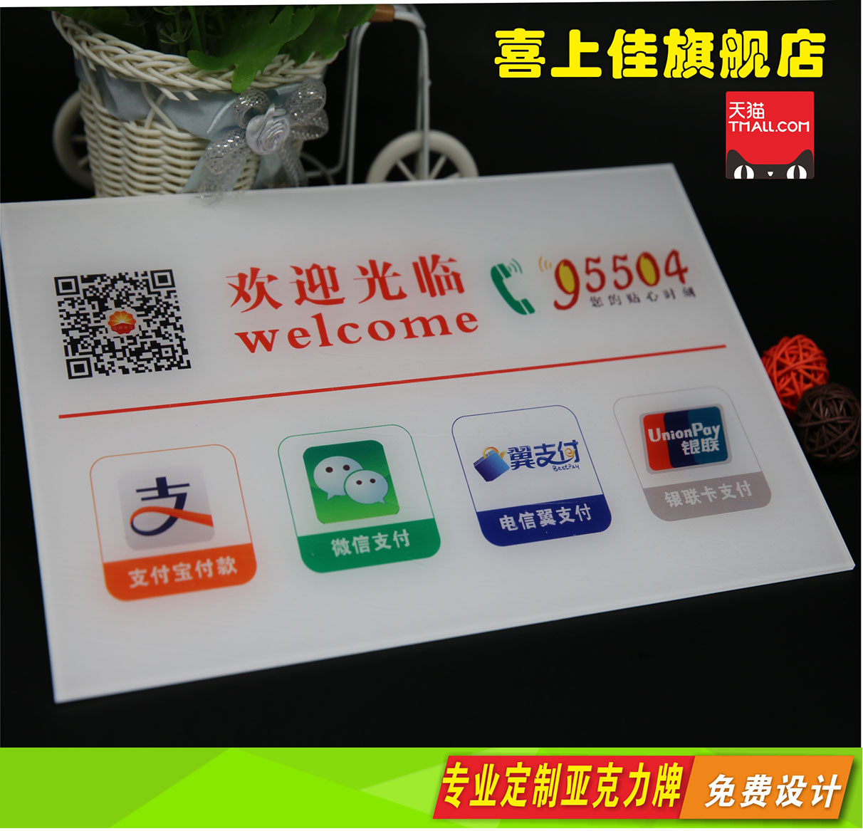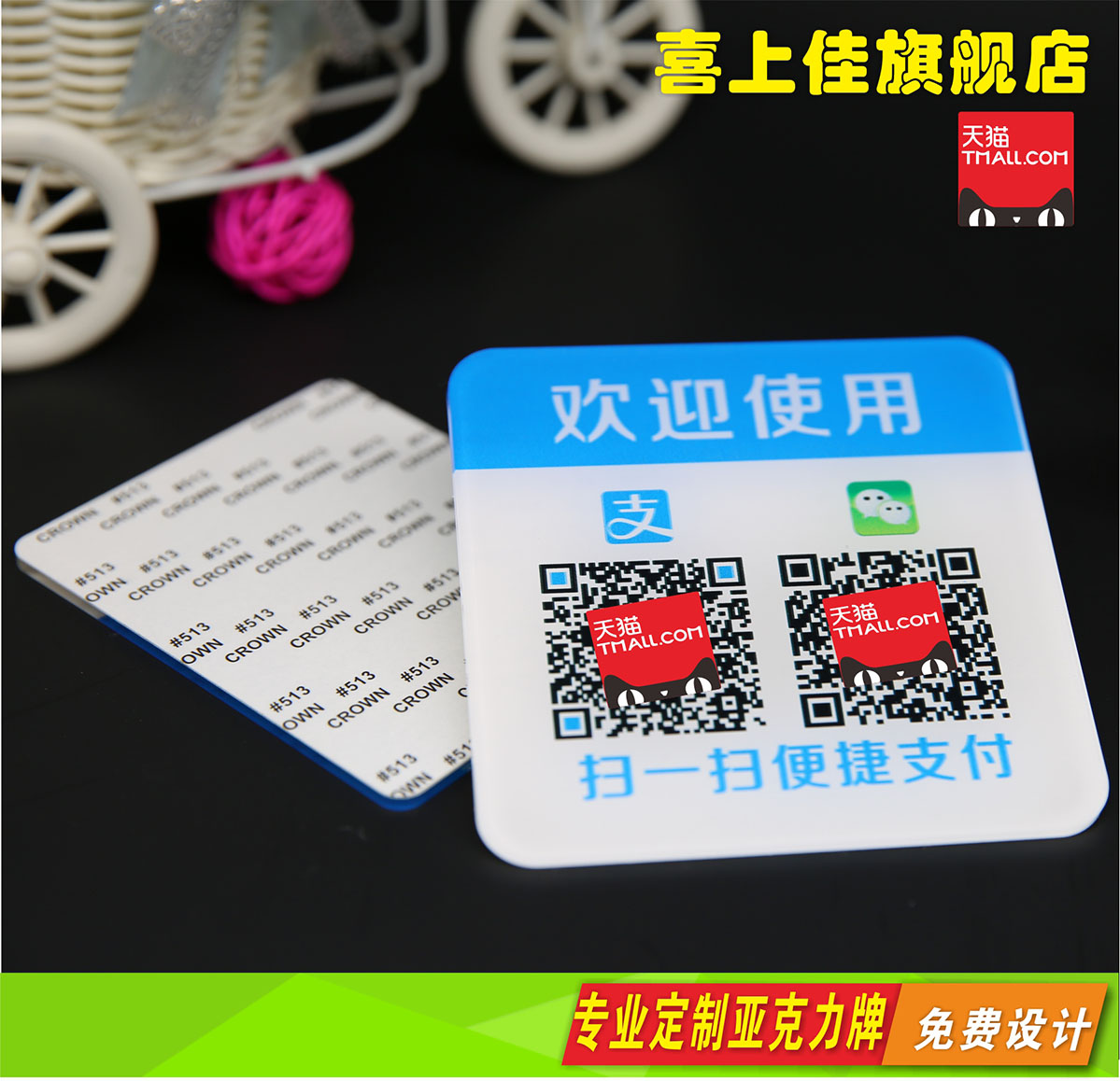 Two-dimensional code WeChat sweep to pay identification card Acrylic Mobile Phone Payment Signage Wall Patch Reminder Card Customize