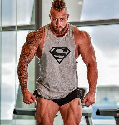 New products Professional fitness vest Kan shoulder T-shirt Word Vest movement cross-column male and Xia pure cotton loose sweat