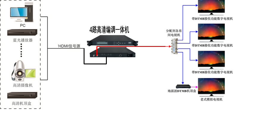 4-channel high-definition coding modulator Hotel digital TV system 8 12 16 24-channel HDMI to RF
