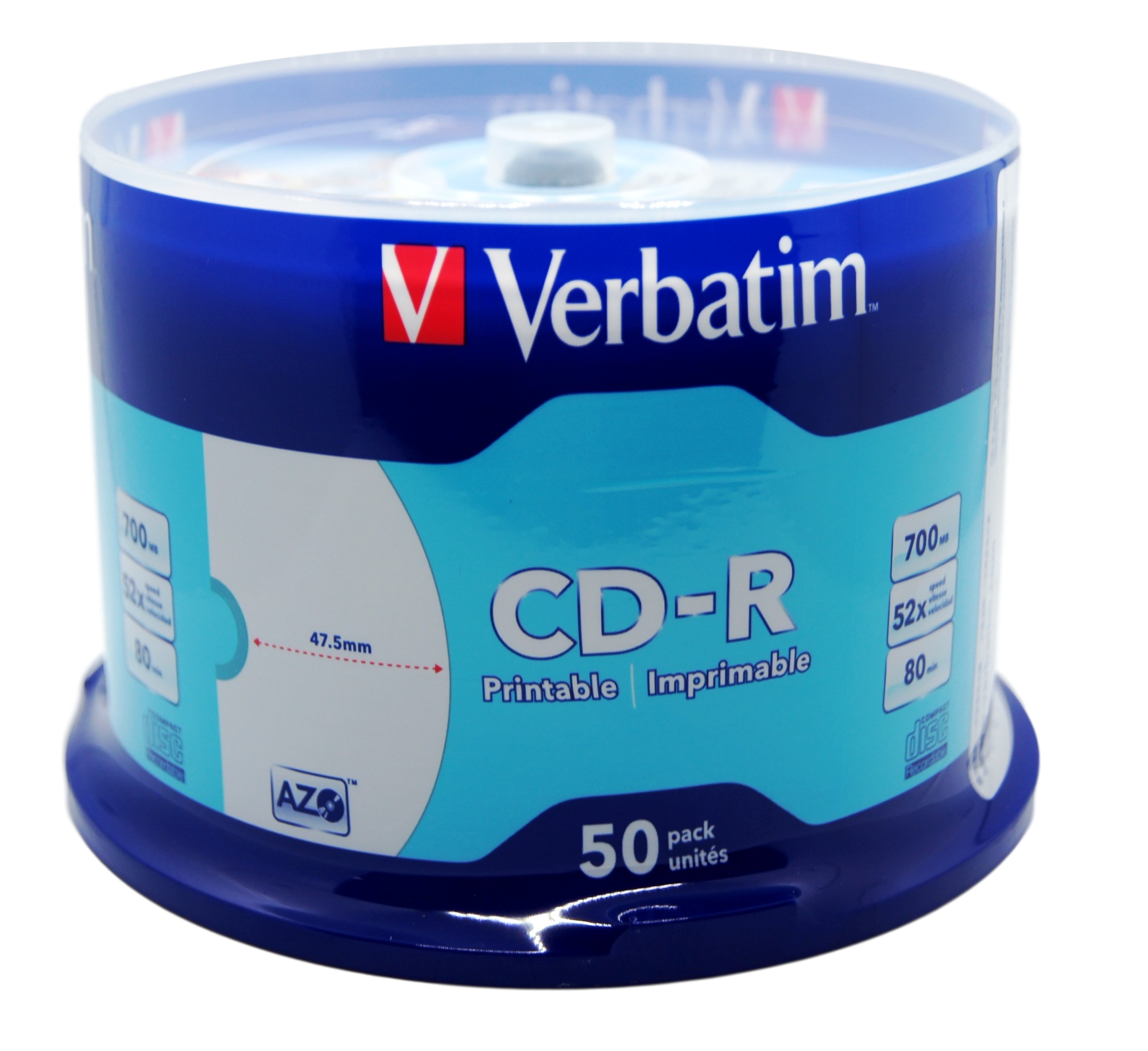 Webo VerbatimCD-R 52X 50P Drum Burner Light Blue Printable DISC Blank Music Tray