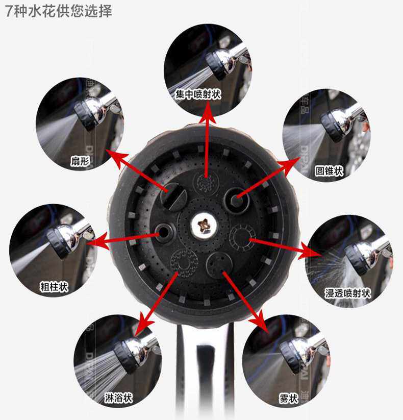 Electroplating multipurpose water gun 7 function front trigger metal water drum car wash water spray gun watering machine for flushing water gun