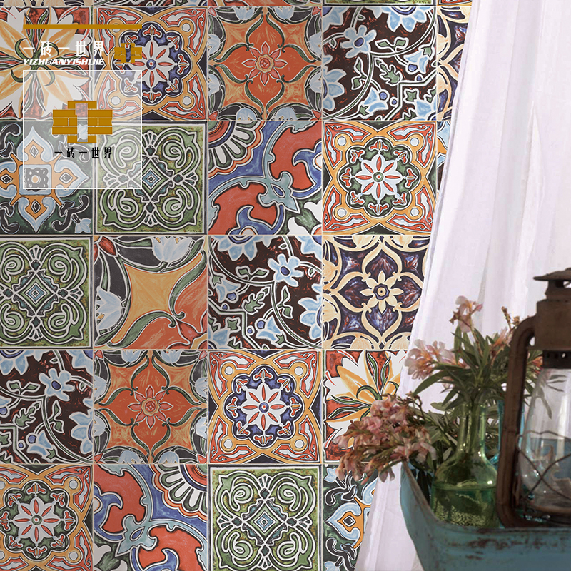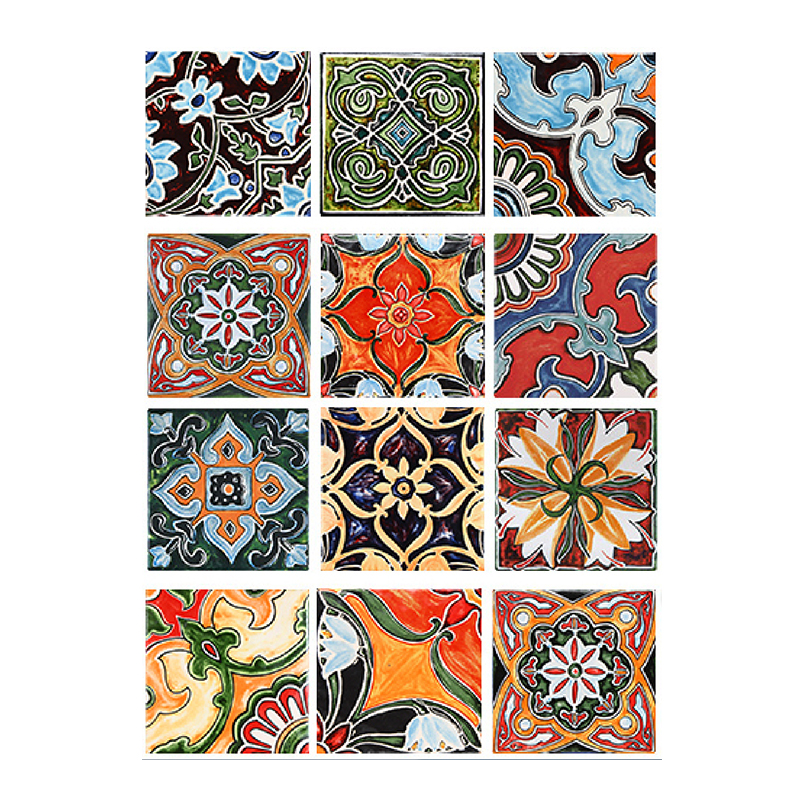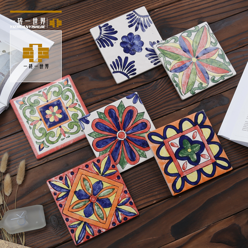 Small tile Spanish hand painted restaurant kitchen and bathroom stair tile art background color flower tile waist line tile 150