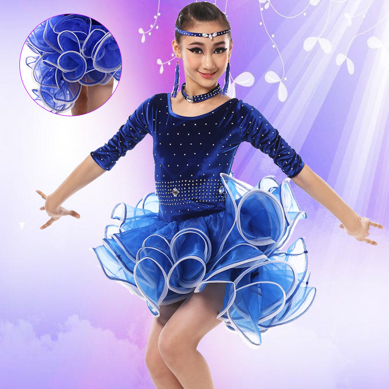 New children Latin dance dresses young children girls Latin dance dress velvet Velvet Examination for the practice Conqueror Contest