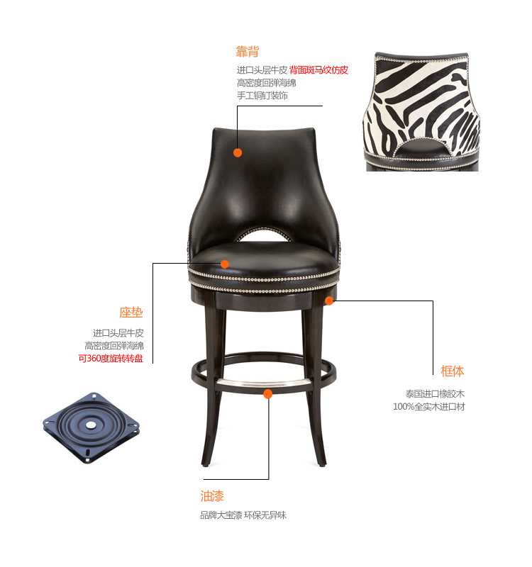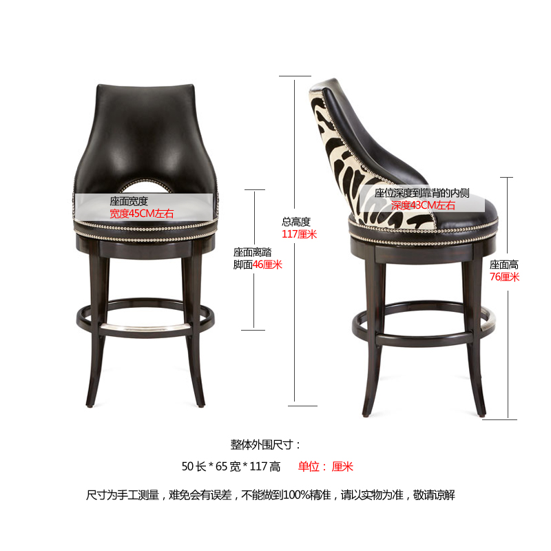 Neoclassical Bar Chair Solid Wood High Foot Chair Spot High Footstool Bar Chair Genuine Leather Bar Chair Eurostyle Bar Table Chair
