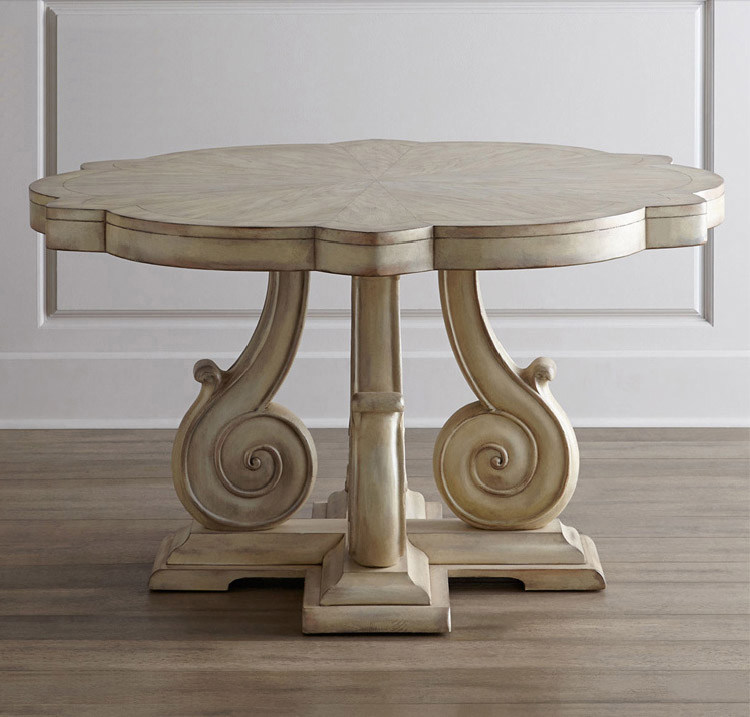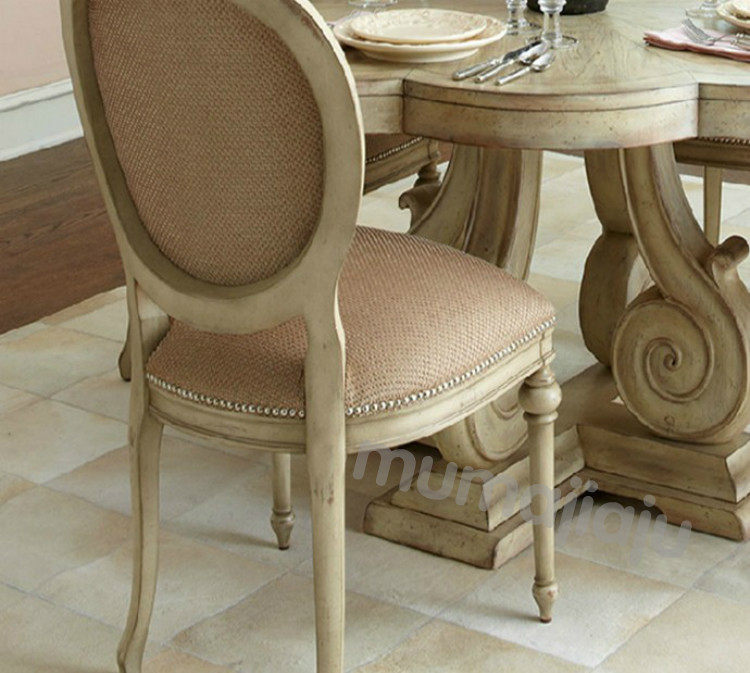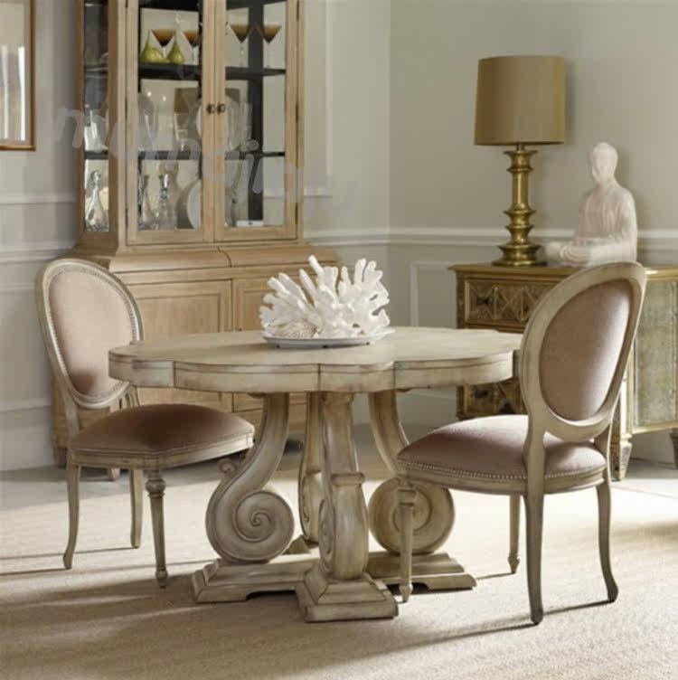 American antique and old solid wood dining table and chair combination hexagonal table French country small apartment oak round dining table