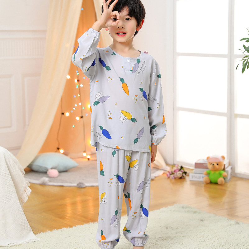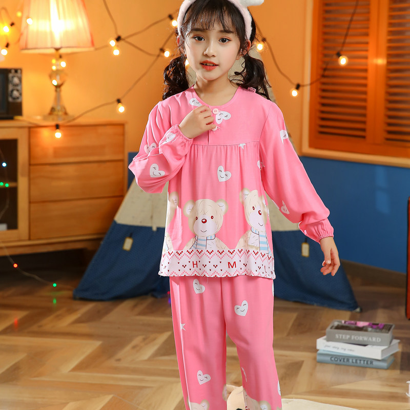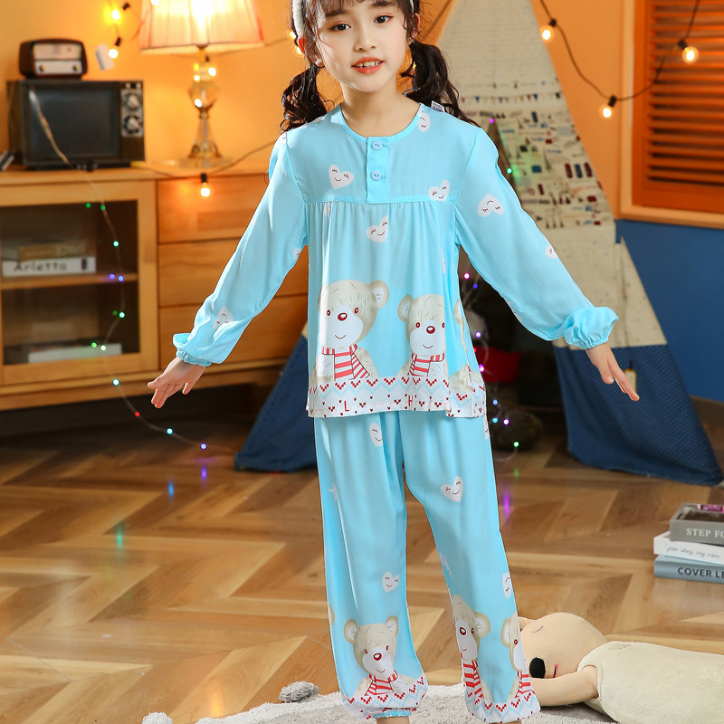 Little girl princess children's clothing baby cotton silk air conditioner thin spring and autumn new pajamas oriental silk long sleeve suit