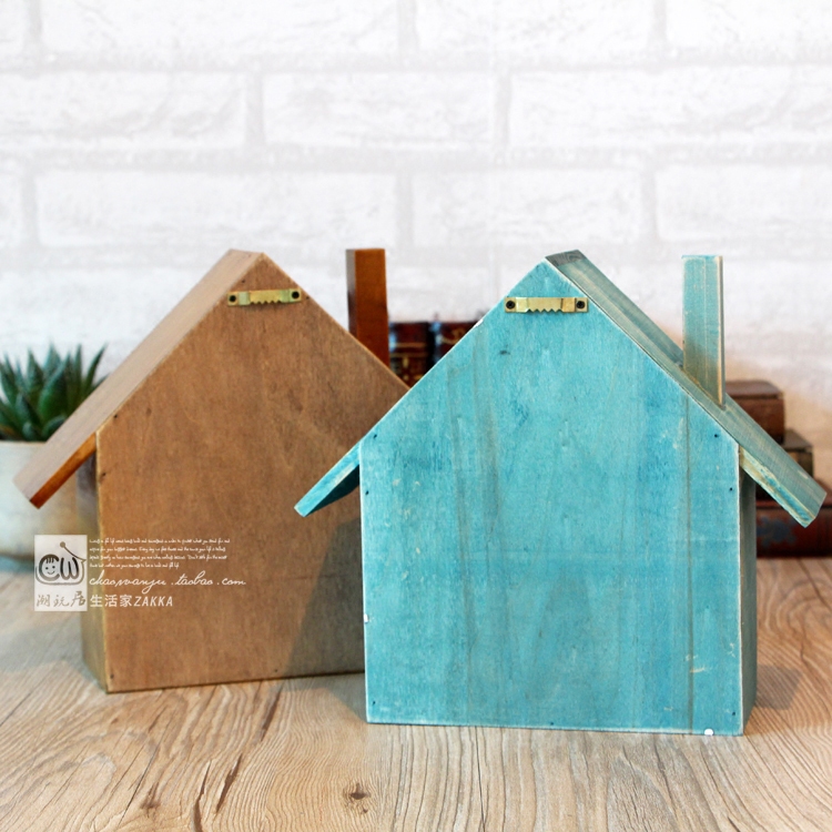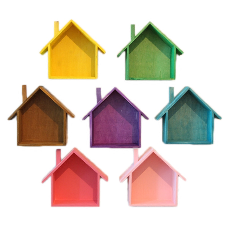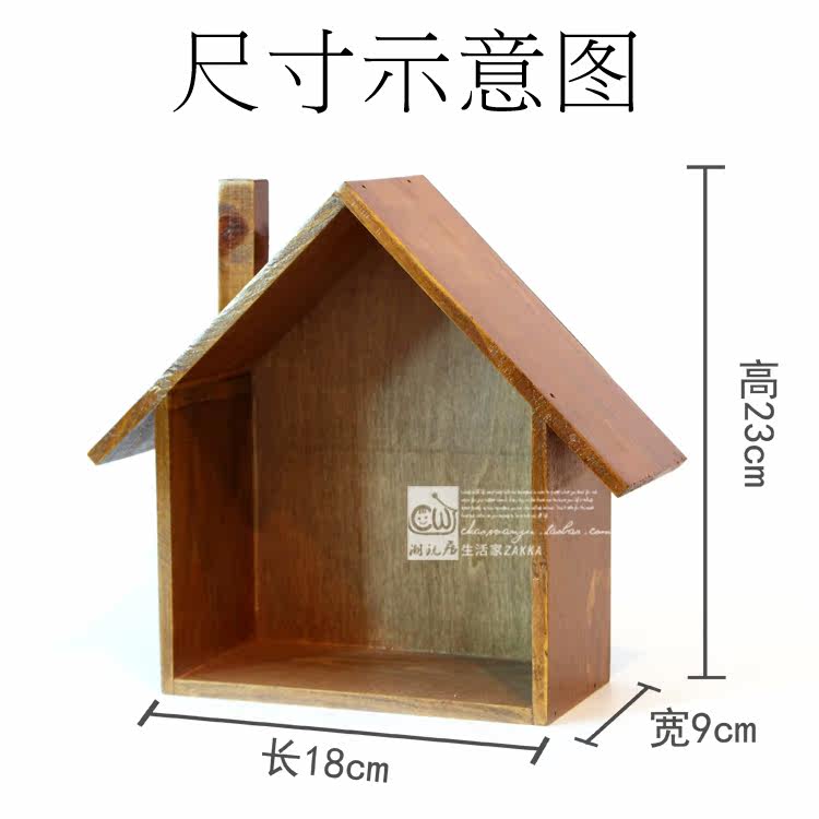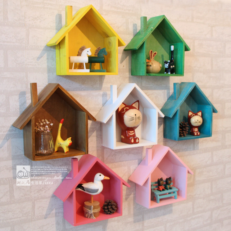 Solid Wood Wall-mounted Wall Decoration Wall-mounted Small House Wooden Bird House Café Clothing Store Living Room Creative Wall Decoration Shelf