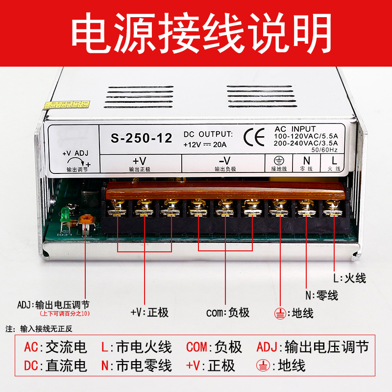 12V20A 12V20A switching power supply 12V250W DC output light with single set of LED switching power supply home S-250-24