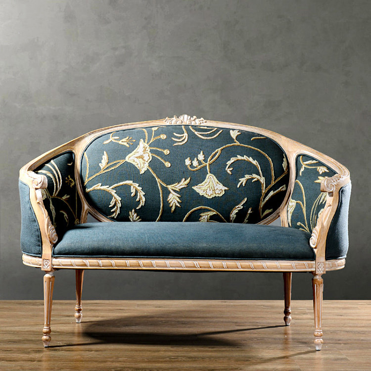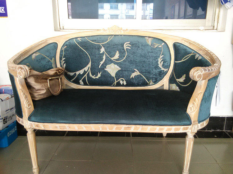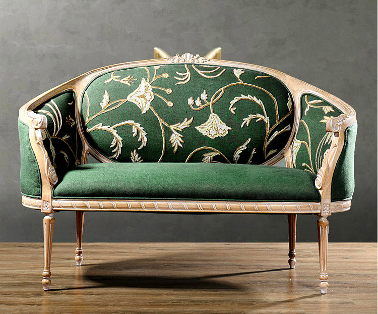 American oak frame fabric sofa European carved leisure high back printing sofa photo studio French living room furniture