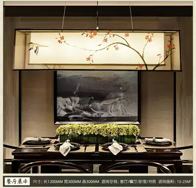 Rectangular new Chinese chandelier hand-painted dining room modern simple plum blossom fabric hotel bar engineering custom lamps