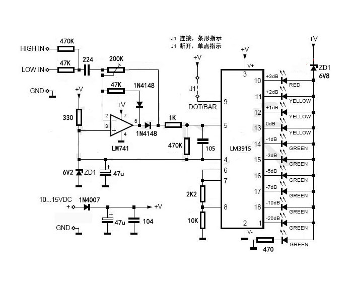 LM3915 Level Table VU Table Power Meter Microphone Amplifier 10 LED Level Indicator Aperture