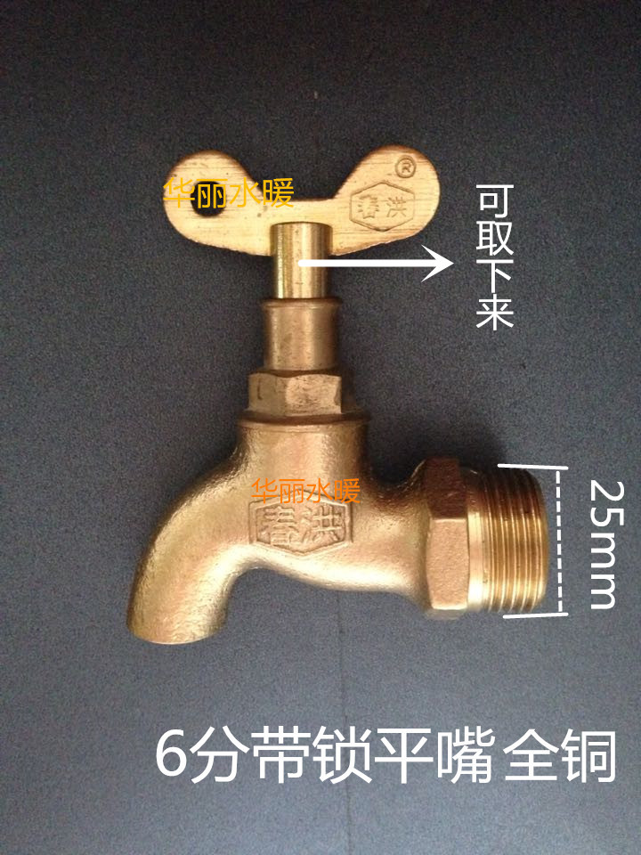 Outdoor anti-theft all copper with key slow boiling water faucet mop pool single cold water nozzle DN20 6 points