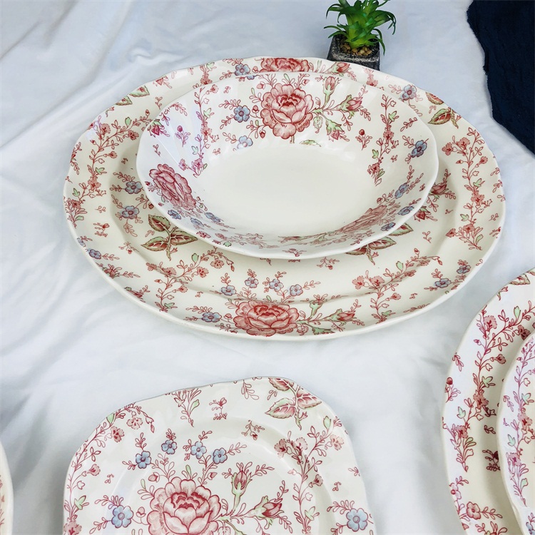 Foreign trade JBS original single Nordic powder Rose ceramic Western food plate Fish plate product pot Household valley bowl