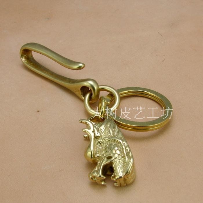 Dragon Head Auspicious Ornament Handmade Leather Goods Brass Car Keychain Bag Pendant Ornament (TC122)
