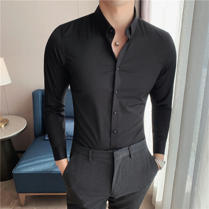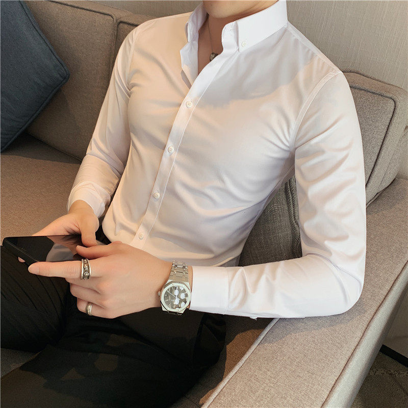 Spring and autumn new white long-sleeved shirt men's Korean version of the self-cultivation type inner shirt hair stylist personality trend inch clothes