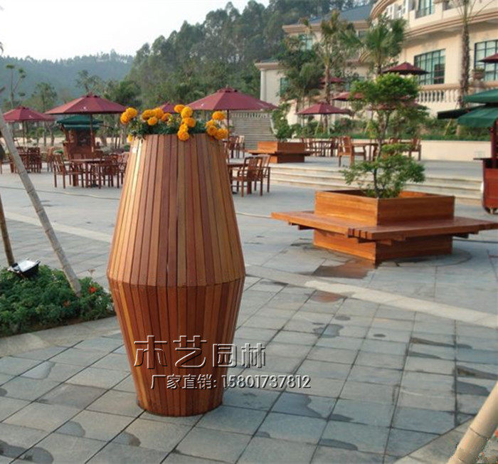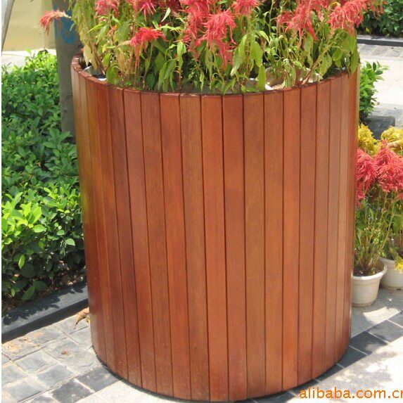 Corrosion Proof Wood Keel Round Flower Case Custom Square Street Landscape Cylindrical Flower Case Flowerpots Flower Barrel Planting Basin-Taobao