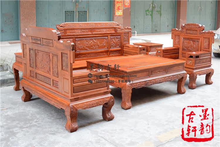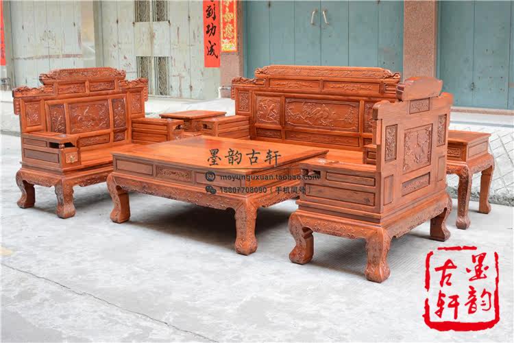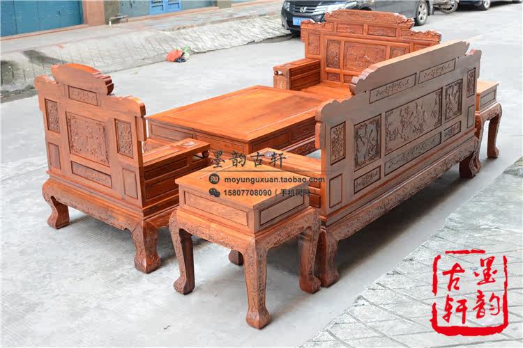Myanmar Rosewood Mulan Pavilion Preface 123 Sofa Big Fruit Red Sandalwood Living Room Combination Sofa Mahogany Sofa Combination 123