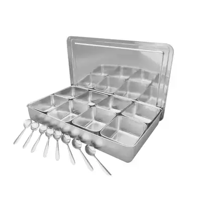 Commercial 304 stainless steel seasoning box stall ice powder ingredients flavor box combination set 8 grid seasoning storage box with lid