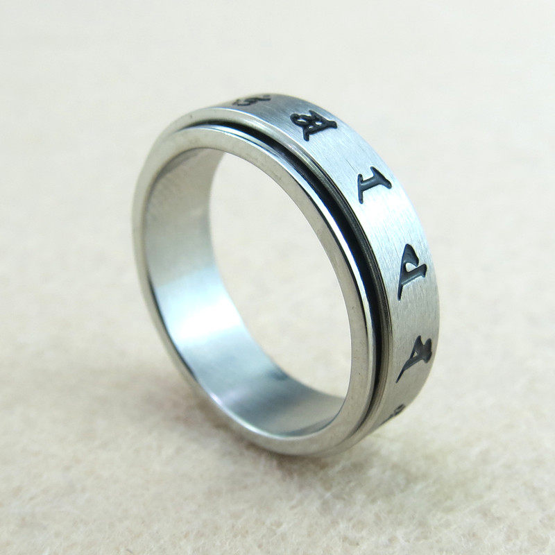 Tie Edge Titanium Steel Manshu Manshu Ring True to the Fortune Transfer Wisdom Couple Men's And Men's Buddha Spells Ring Pendant