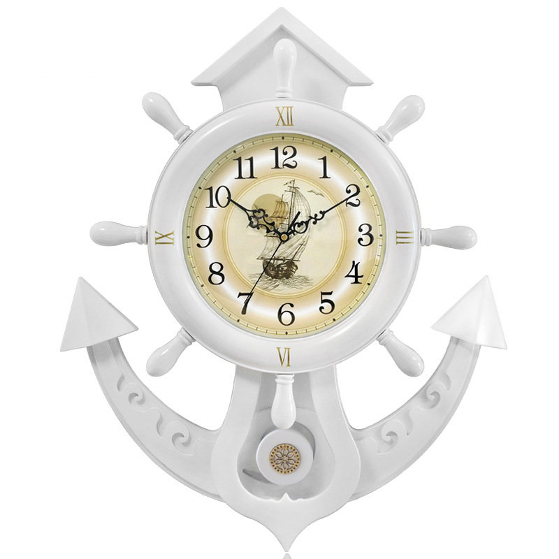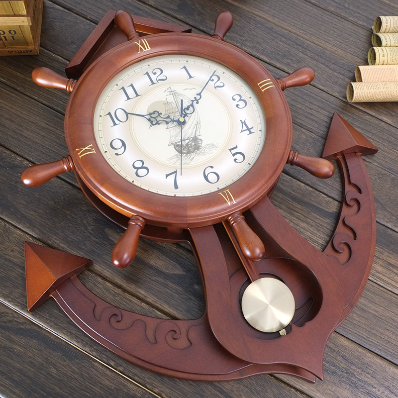 Creative wall wall clock living room European Solid wooden clock rudder silent clock modern mounted Mediterranean quartz clock