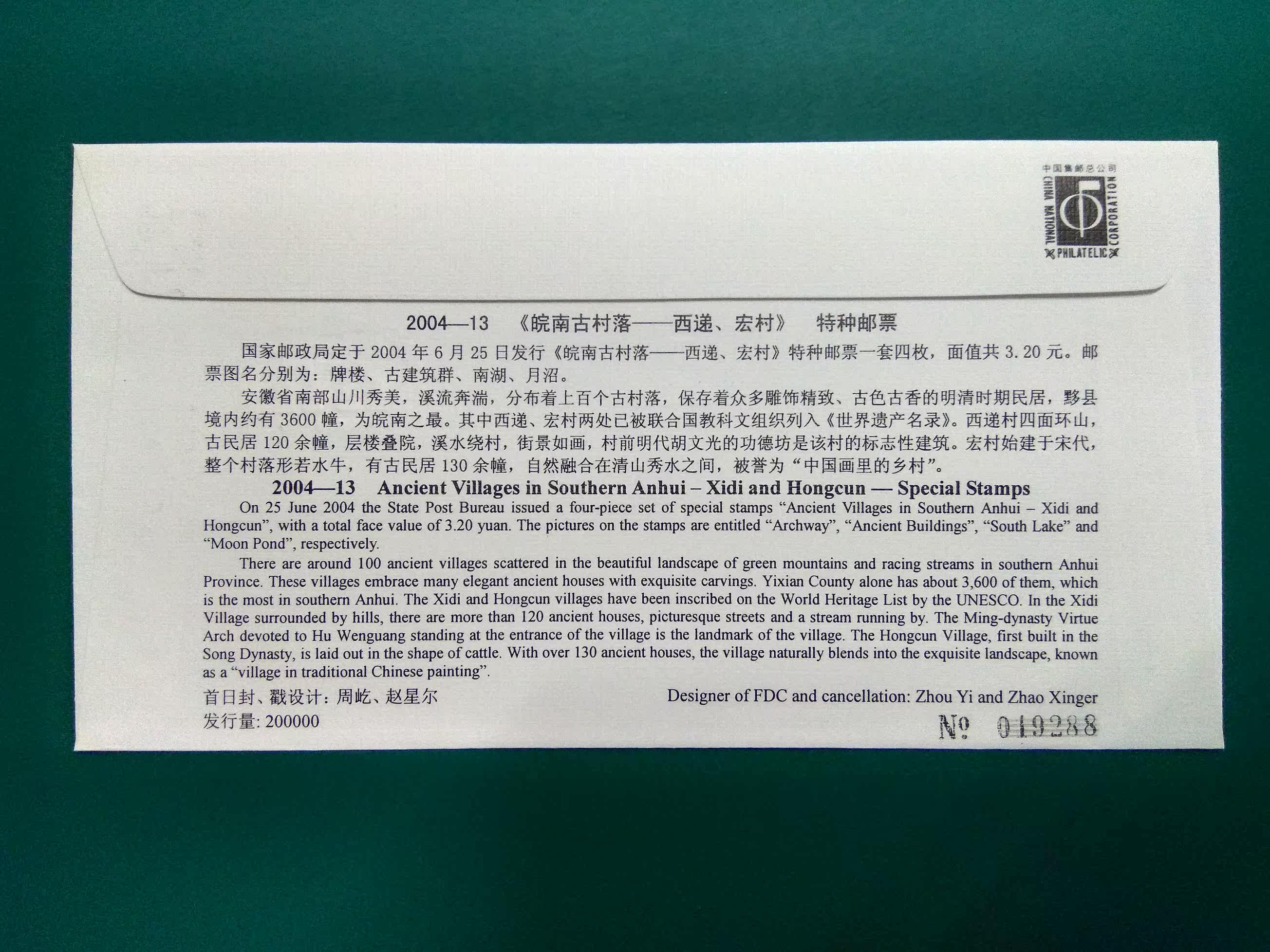 China 2004-13 Ancient Villages in Southern Anhui – Xidi Hongcun Stamps Head Office First Day Cover