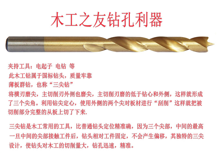 High speed network plated titanium carpentry drill bit three-tip drill bit suit Wood drilling drill bit wood punching drill bit