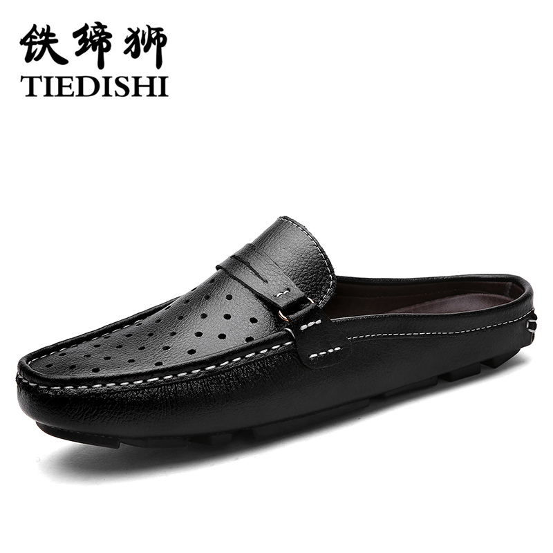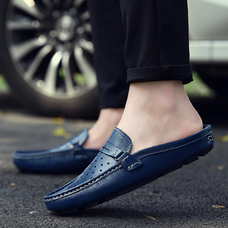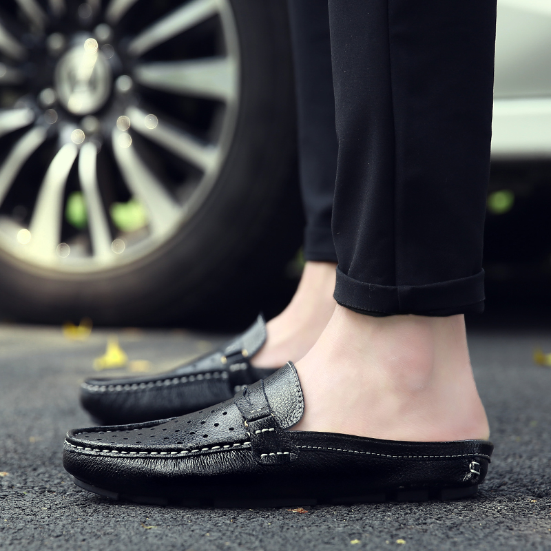 Summer men semi-slippers male soy bean shoes lazy Han version of the leather skin in summer without heel slippers casual leather shoes