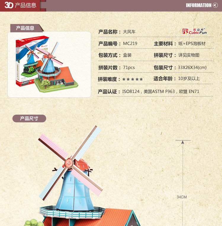 Music Cube 3D Cubic Puzzle Paper Model Toys Dutch Windmills Puzzle Creative Children Adult Toys Gifts