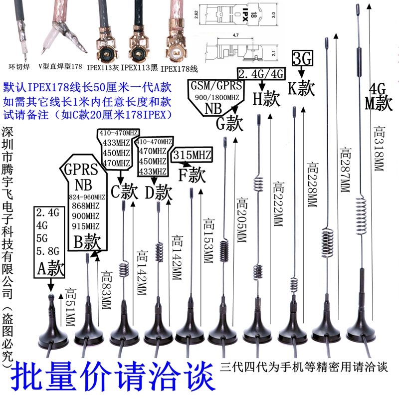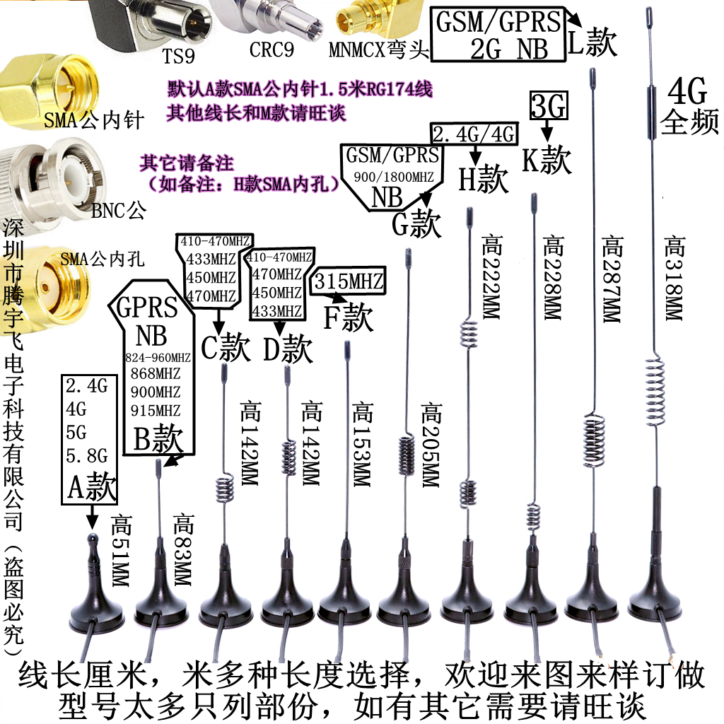 433 high gain magnetic chuck small antenna SMA male pin height 14 2CM extension cord length 3 meters
