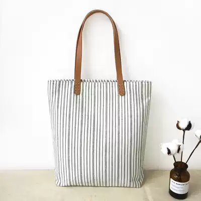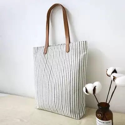 Original niche canvas bag women's shoulder literary small fresh forest students simple all-match striped cotton and linen bag