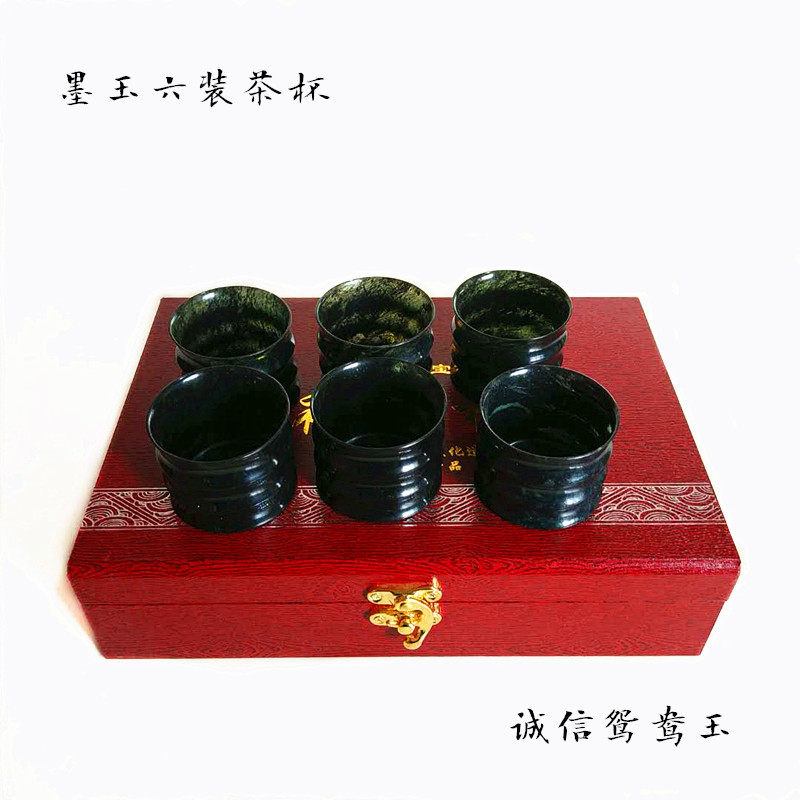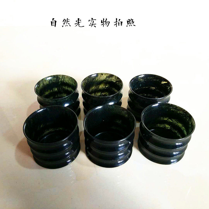 Jiuquan luminous cup Qilian ink jade glass Gansu specialty Mandarin duck jade snake Jade Non-glass teacup tea set direct sales