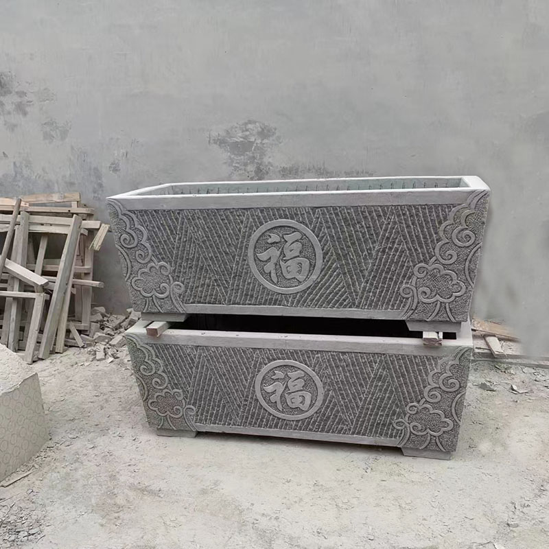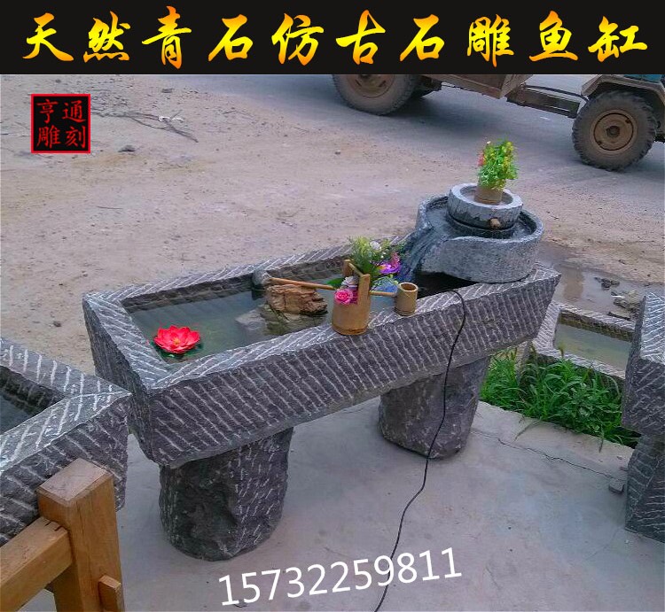 Stone carved natural green stone antique fish tank fish flow combination to make old outdoor stone tank balcony wooden frame