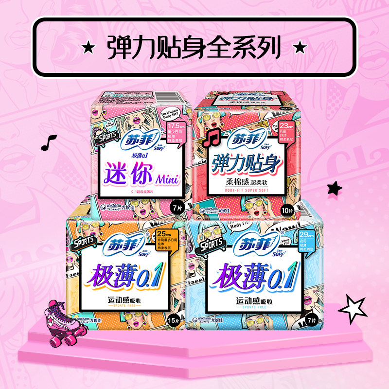 Sufi mini sanitary cotton 175mm less daily cotton soft and protective wing whole box combined with official flagship store