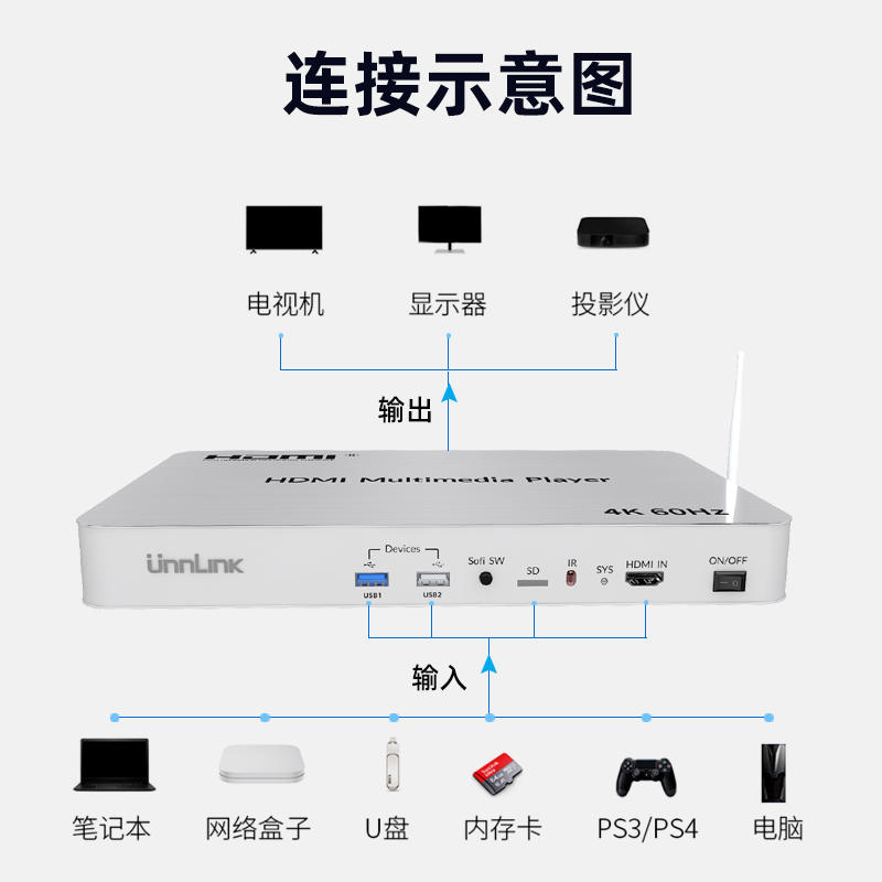 Ulian code streamer 4K HD 10 mouth rca Intelligent Android 10-way TV selling special HDMI port with remote control